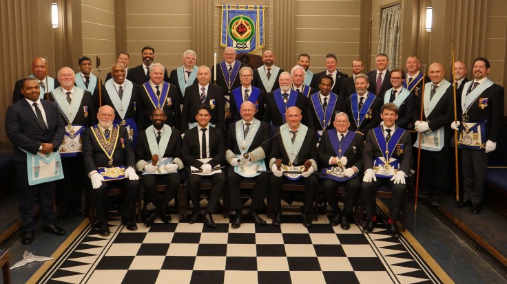 Thank you to all the many Visitors who assisted in creating a welcoming atmosphere in the meeting and joined in our convivial Festive Board, with our now firmly established Karate Fire. We gave our new Brother an excellent welcome to our Lodge and to Freemasonry!