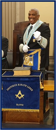 W. Bro. Lt. Col. Joseph Willoughby David Lloyd George Clarke GA, CVO, ADC, PJGD was initiated into Lodge Thistle No. 1014 under the Grand Lodge of Scotland on 25th November 1992 in the land of his native birth, Barbados. He affiliated to Shotokan Karate Lodge No. 9752 on 14th February 2004.