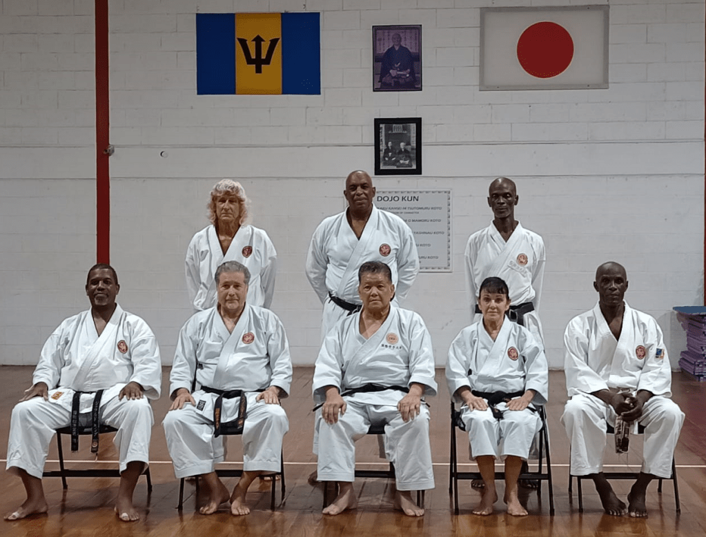 W. Bro. Lt. Col. Clarke is pictured below (back row centre) at his 7th Dan grading at the Barbados Shotokan Karate Club Dojo on Tuesday 4th July 2023.