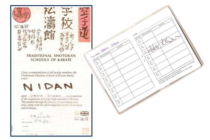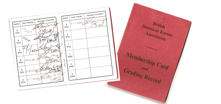 My 3rd kyu grading from Mid Herts Karate Club was transferred to the KUGB and thereafter graded for 2nd and 1st kyu.